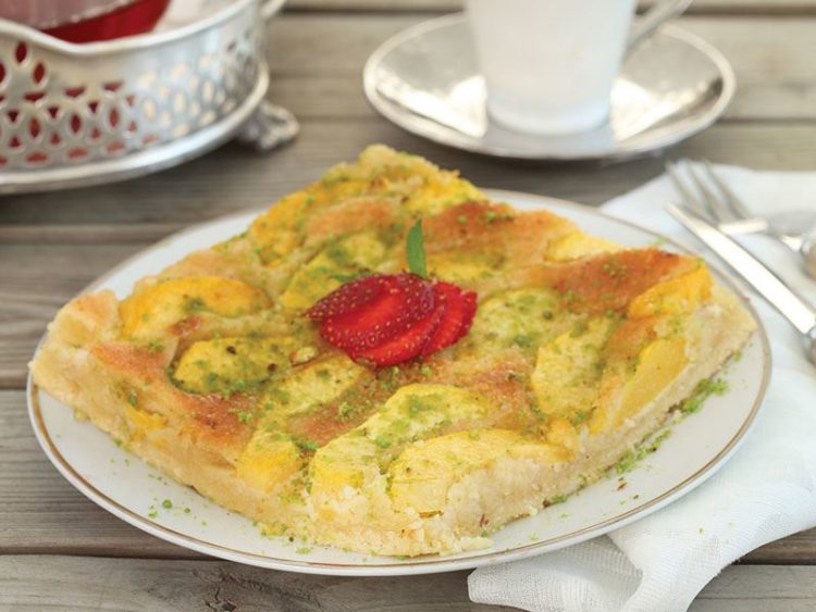 - Tart hamurunun üzerine şeftalileri dizin..