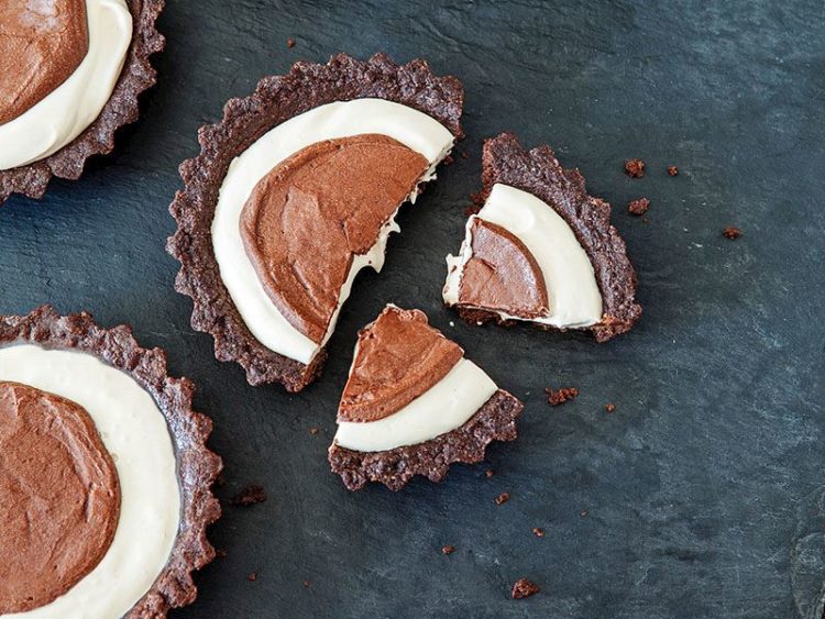 - Başka bir tencerede 3 yemek kaşığı krema, tuz ve çikolatayı benmari usulü ısıtın ve tartların üzerine dökün..