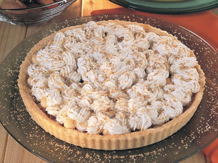 - Tart soğuyunca krem şantiyi yıldız uçlu krema sıkma torbasına doldurup tartın üzerine dekoratif şekilde sıkın..