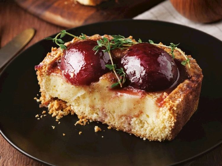 - Tartı fırından alıp erikleri üzerine dizin ve 30 dakika daha pişirin..