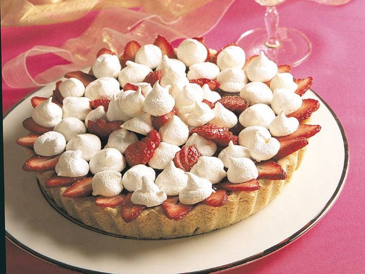 - Tartı mereng ve çileklerle süsleyin..