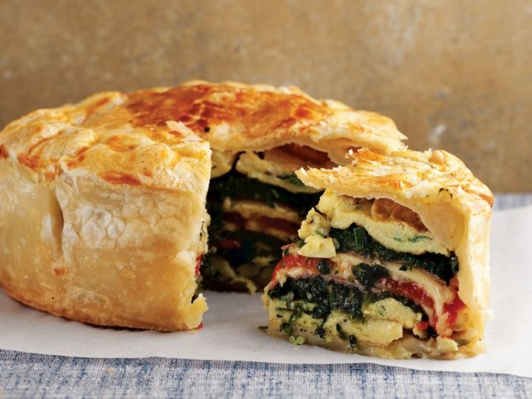 yumurtalı ve ıspanaklı harcın yarısı, jambonlu harcın yarısı