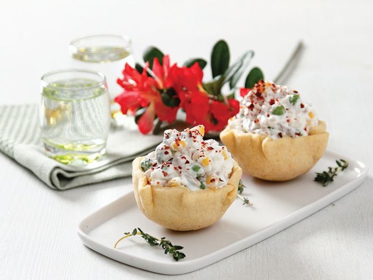 - Soğuduktan sonra hazırladığınız tavuklu harcı tartöletlerin üzerine paylaştırın..