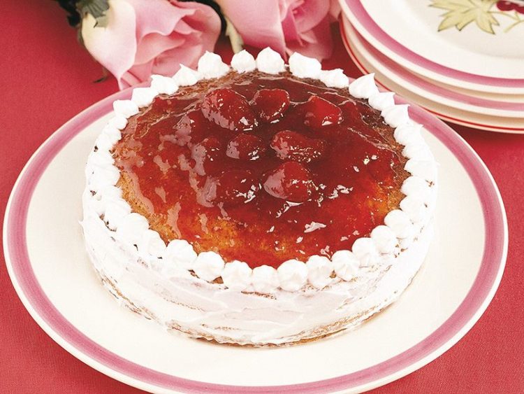 - Kekin üzerini çilek taneleri ile kaplayın..