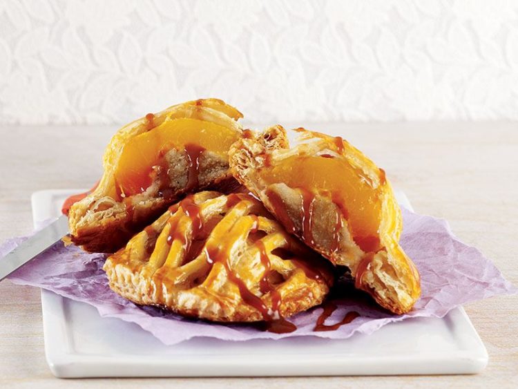 9. Kalan milföy hamurlarını kafes şeklinde kesip şeftalililerin üzerine kapatın..