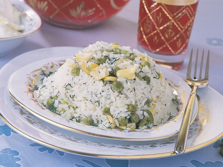 - 3 su bardağı pirinç3 su bardağı su2 çorba kaşığı sıvıyağ150 gr kuru iç bakla200 gr konserve bezelye1 çorba kaşığı sıvıyağYarım demet dereotuTuz