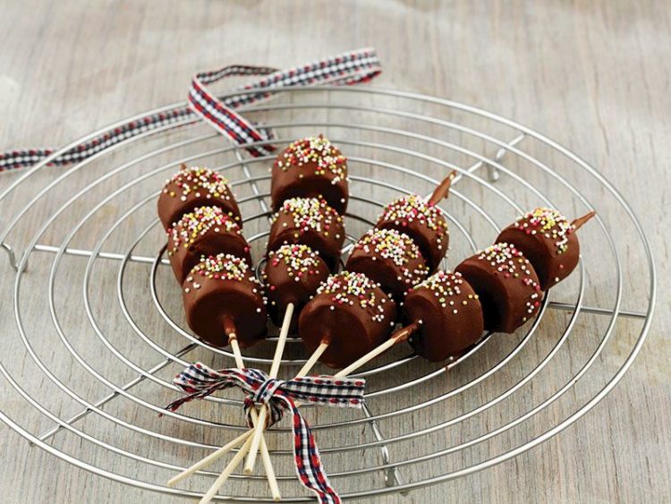 2. Tahta şişlere muzları aralıklı olarak dizin..