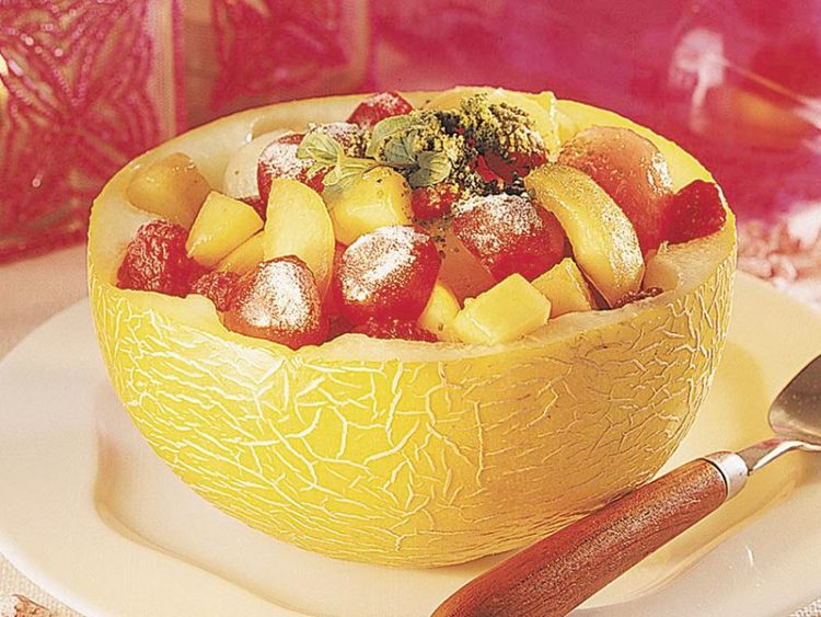 Kavun kâsesinde meyve salatası