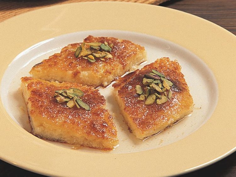 Tepsiyi fırından çıkarıp sıcak şerbeti üzerine gezdirerek dökün ve soğumaya bırakın..