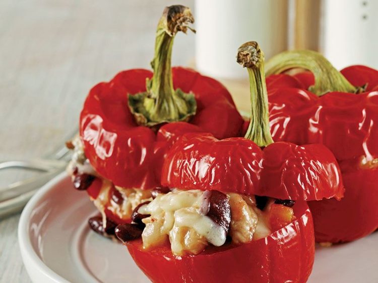 Tavuk etli ve mantarlı kırmızıbiber dolması