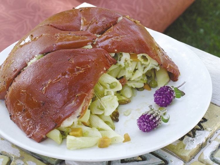 13. Fırından alıp düz bir servis tabağına ters çevirin..