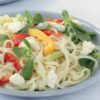 - Noodle’ları kaynayan tuzlu suda haşlayıp süzün ve sudan geçirin..