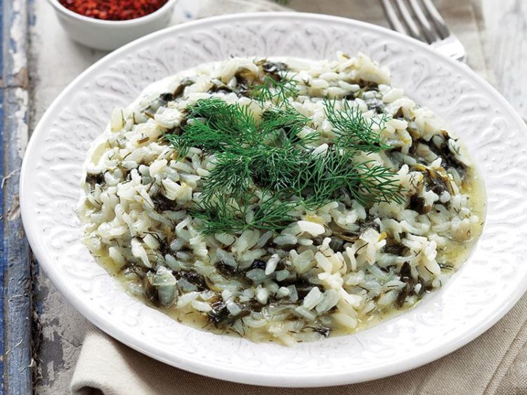 - Pirinç ve ince kıyılmış dereotunu da ilave edip yaklaşık 10 dakika pişirin..