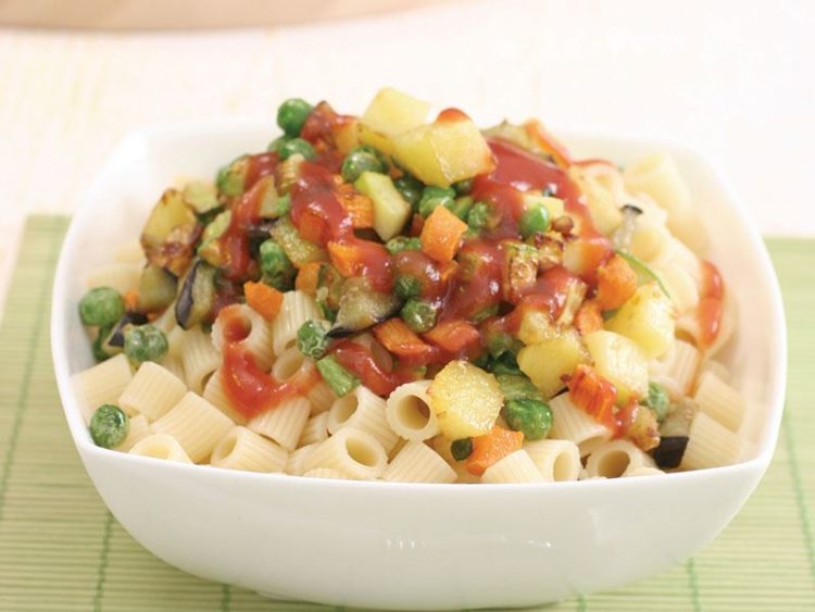 - Hazırladığınız sebzeli karışım ile Yüksük Makarnayı harmanlayın..