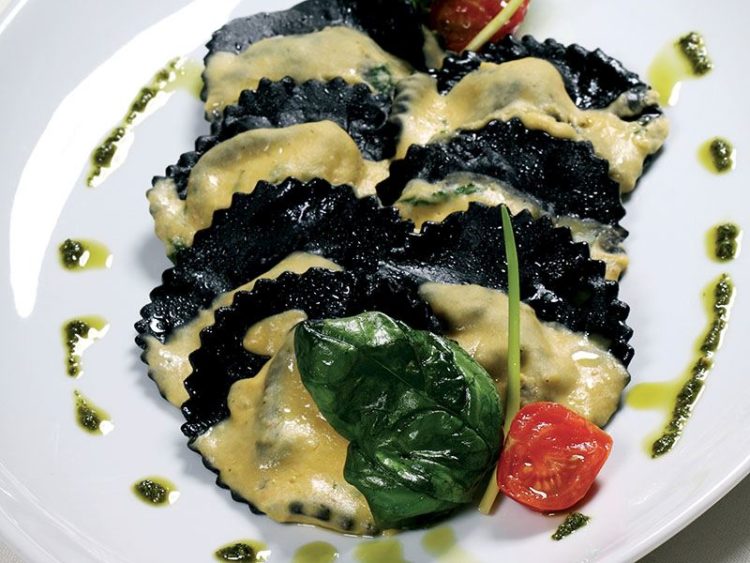 Yengeç etli siyah ravyoli