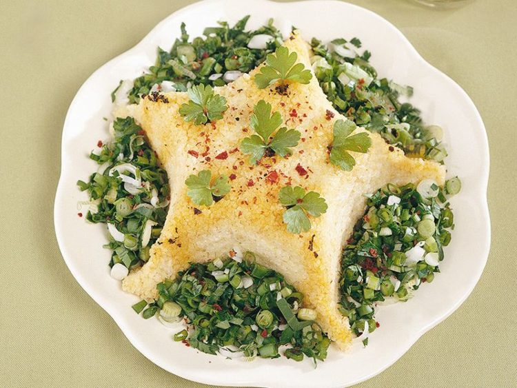 - Kenarlarını taze soğanlı karışımla süsleyin..