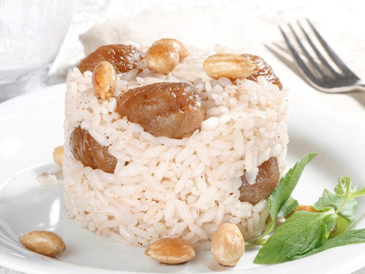 - 2 su bardağı baldo pirinç 2 yemek kaşığı zeytinyağı 50 gr tereyağı 1 soğan 500 gr kestane 4 su bardağı tavuk suyu 1 tatlı kaşığı tarçın Tuz