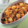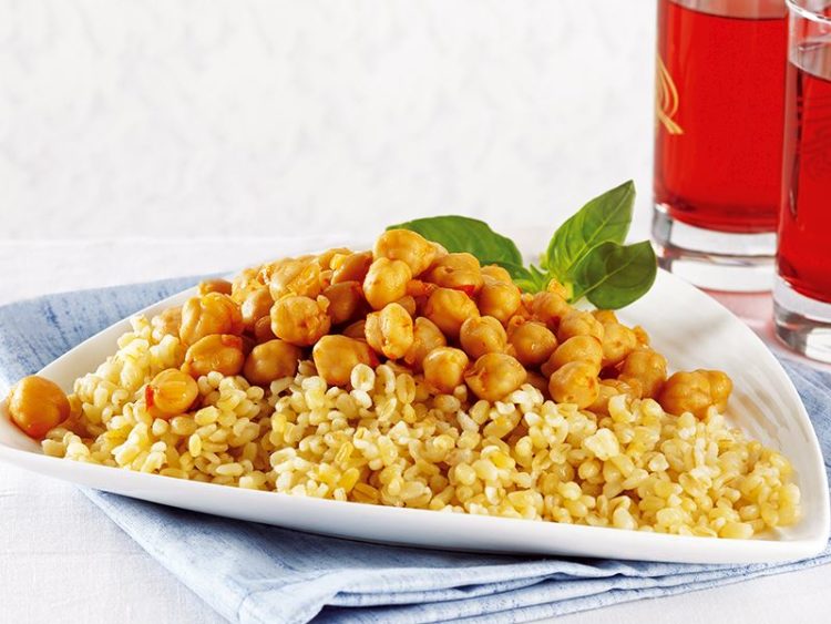 Nohut yemeğini yanında bulgur pilavıyla birlikte servis