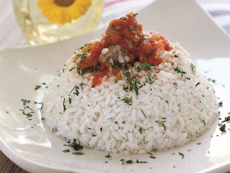 - Pilavı bir servis tabağına alın, ortasını açıp köfteleri yerleştirin..