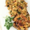 - Elde ettiğiniz harçtan bir yemek kaşığı kadar alarak, hafif yağladığınız bir fırın kabına yayıp üzerini düzleştirin..