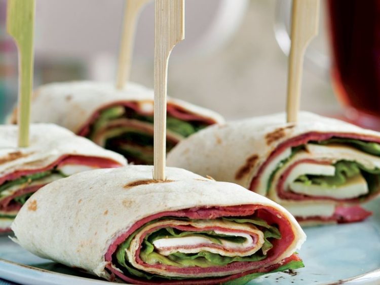 - Tortilla ekmeklerini dürüm şeklinde sarıp, yapışmaz yüzeyli bir tavada hafif ısıtın..