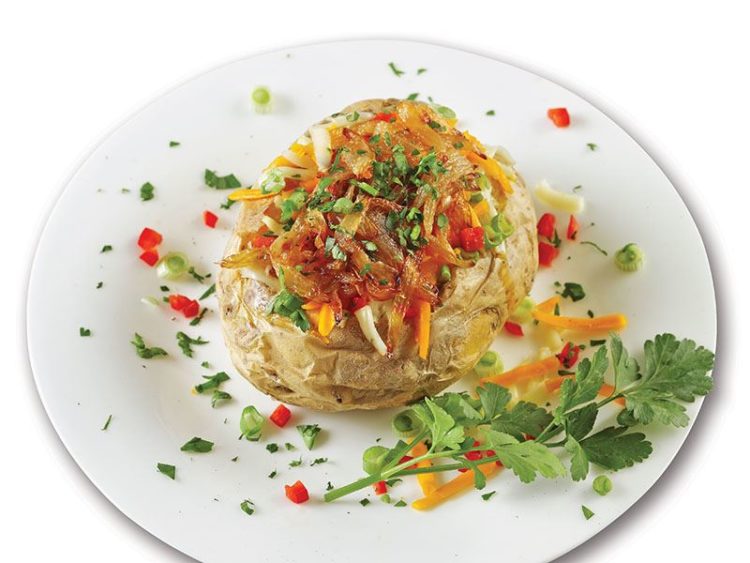 - Patatesin üzerinden ince bir kapak kesin ve çatalla içini ezin..
