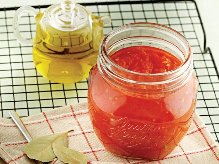 - Domates sosunun içine defne yaprağı atıp kavanoza doldurun..
