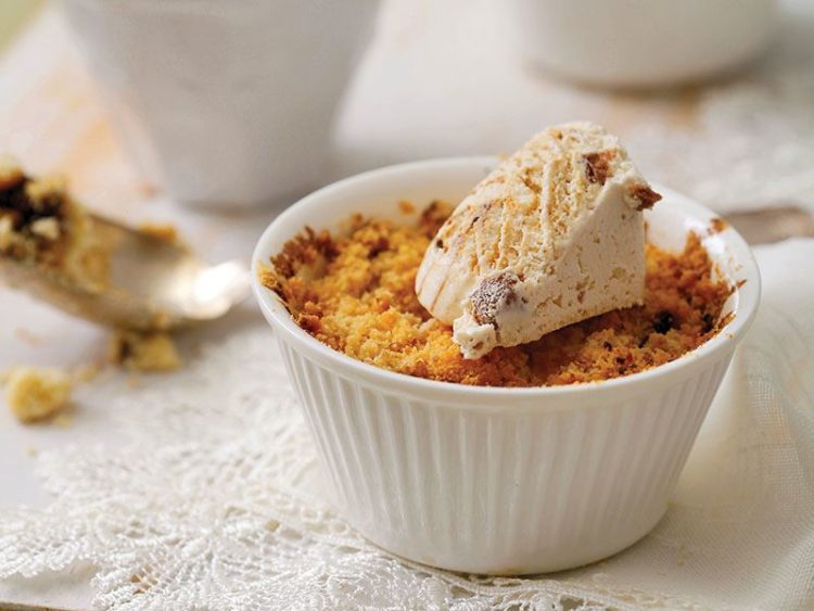- Fırından alıp üzerine vanilyalı dondurma ekleyip bekletmeden servis yapın..