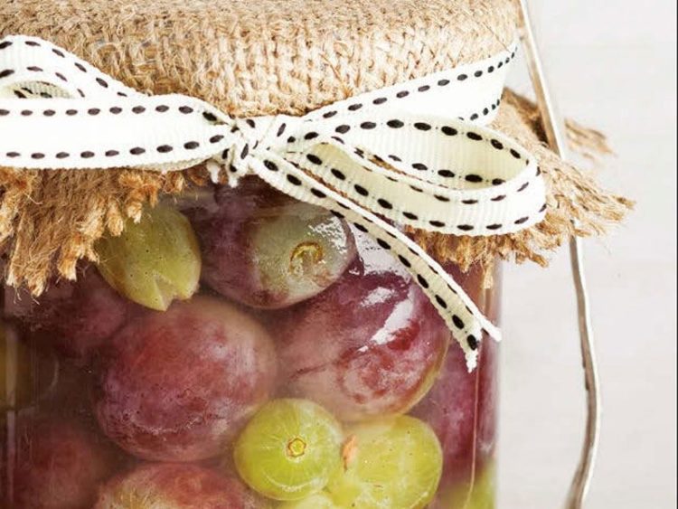 - Üzümleri sıkıştırarak cam bir kavanoza yerleştirin..
