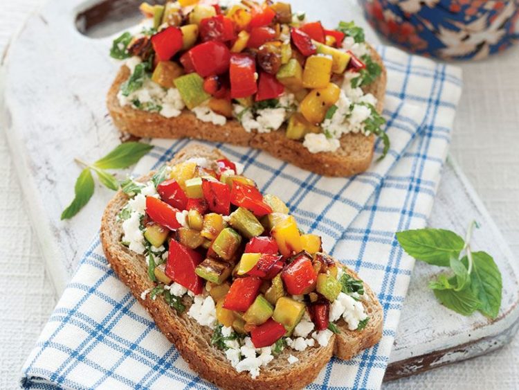 Fırınlanmış sebzeli vekeçi peynirli bruschetta