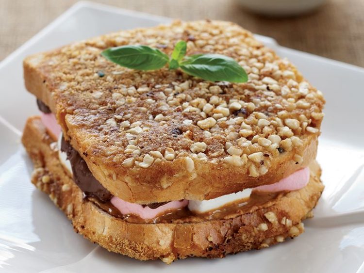 - Ekmek dilimlerinin sadece bir yüzünü önce yumurtalı sosa, ardından bisküvili ve fındıklı malzemeye batırın..