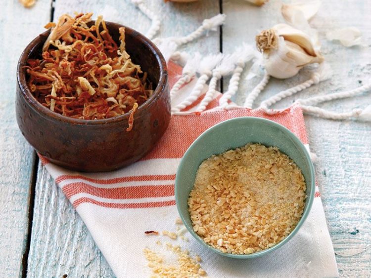7. Kurutulmuş soğan ve sarımsak tozunu yaparken biraz deniz tuzu ile karıştırıp mutfak robotunda çekebilirsiniz..