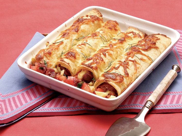 10. Isıya dayanıklı dikdörtgen bir fırın kabına hazırladığınız ruloları yan yana dizin..