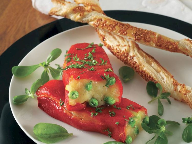 5. Patates püresini biberlerin içlerine paylaştırın ve rulo sarın..