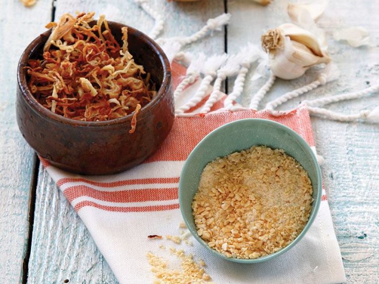 - İyice kuruyan ya da fırınladığınız sarımsakları bir baharat öğütücüsünde, doğrayıcıda ya da havan içinde ezerek toz haline getirin..