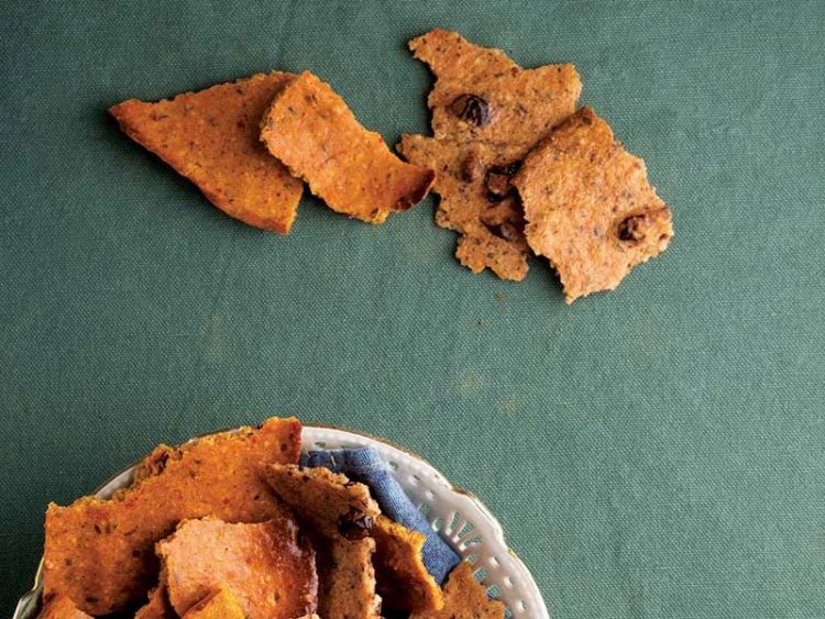 6. Yağlı kağıt serili fırın tepsisine tarhanalı karışımı ince bir tabaka halinde yayın..