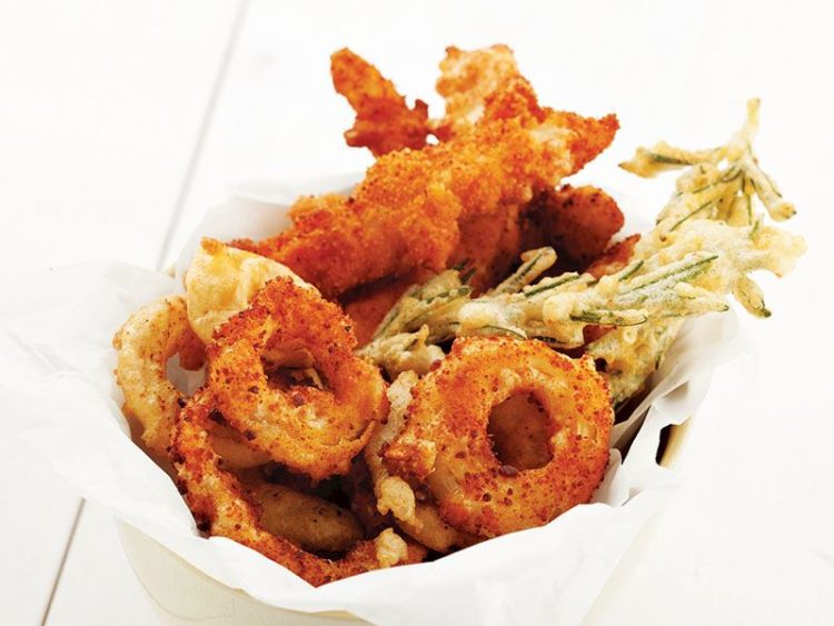 - Parmak şeklinde kestiğiniz tavuk etleri, biberiye dalları ve soğan halkalarını bu karışıma bulayın..