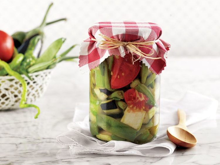 - Sebzeleri kavanozlara değişimli olarak yerleştirin..