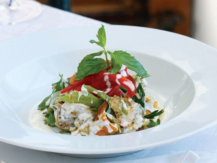 10. Sarımsaklı yoğurdu üzerine yayıp zeytinyağında kavrulmuş toz kırmızıbiberi gezdirerek dökün..