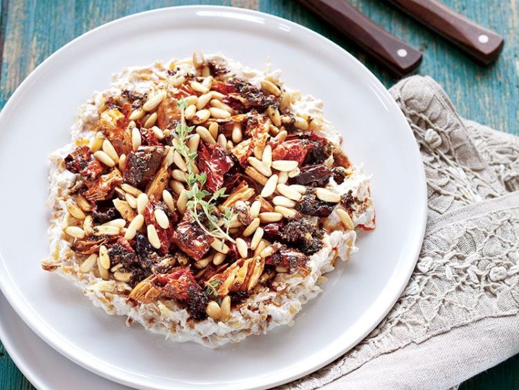 - Kavrulmuş çam fıstıklarını üzerine serpin..