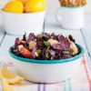 - Zeytinyağı, sirke, limon suyu ve rendelenmiş limon kabuğunu bir kapta karıştırın..