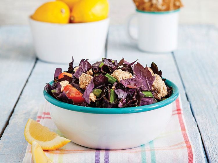 kıyılmış taze soğan ve reyhanı ekleyip harmanlayın..