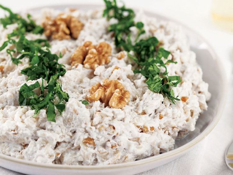 - Üzerini bütün ceviz içi parçaları ve kıyılmış maydanoz ile süsleyerek servis yapın..