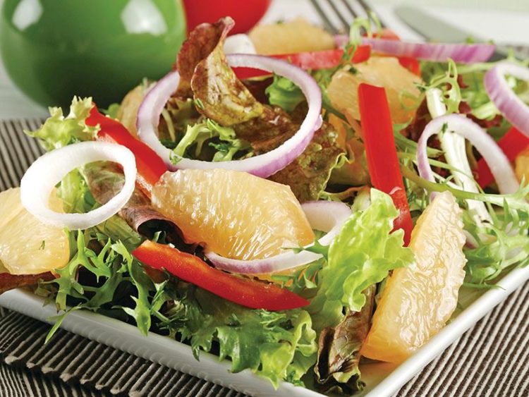 - Tuz, greyfurt suyu ve zeytinyağını karıştırıp salatanın üzerine gezdirin..