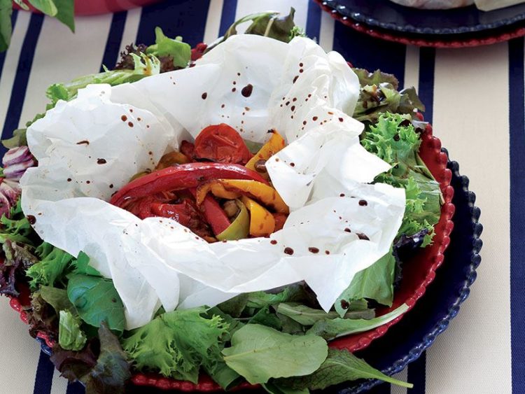 Kağıtta karamelize közlenmiş domates, ve renkli biber salatası tarifi mi aramıştınız? Kağıtta karamelize közlenmiş domates, ve renkli biber salatası , Salata Tarifleri ve binlerce resimli yemek tarifleri – Lezzet!