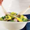 - Büyük bir kasenin içine, yıkanmış marul yapraklarını irice koparıp koyun..