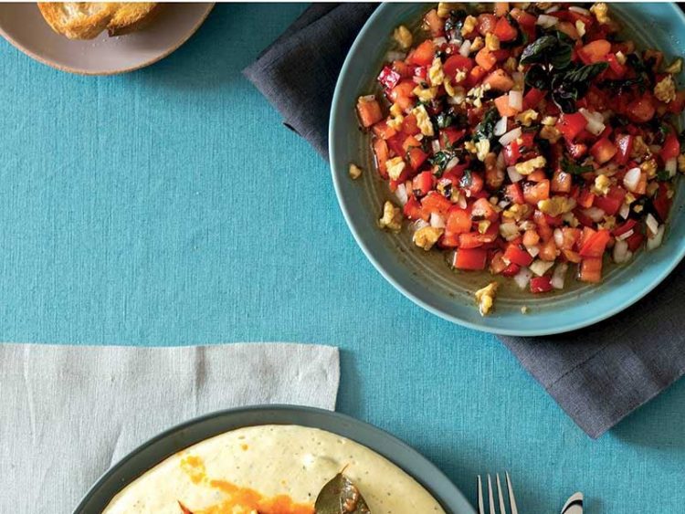 - Domatesler, soğan ve kırmızı kapya biberini küçük küp şeklinde doğrayın..