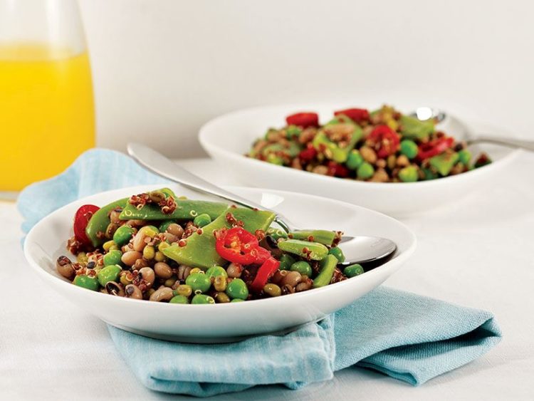 - Bezelye, börülce ve kinoayı ekleyin..