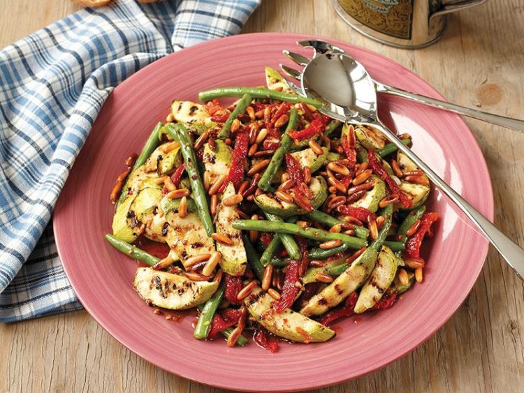 7. Fasulye, kabak, domates ve sos karışımını geniş bir kapta harmanlayarak servis yapın..