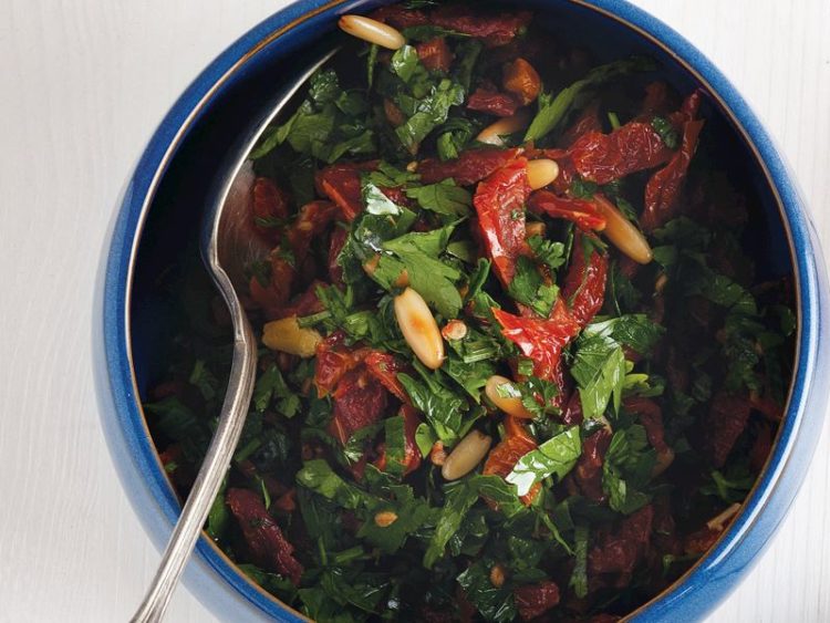 4. Maydanozları ince doğrayıp kurutulmuş domateslerin üzerine ekleyin..